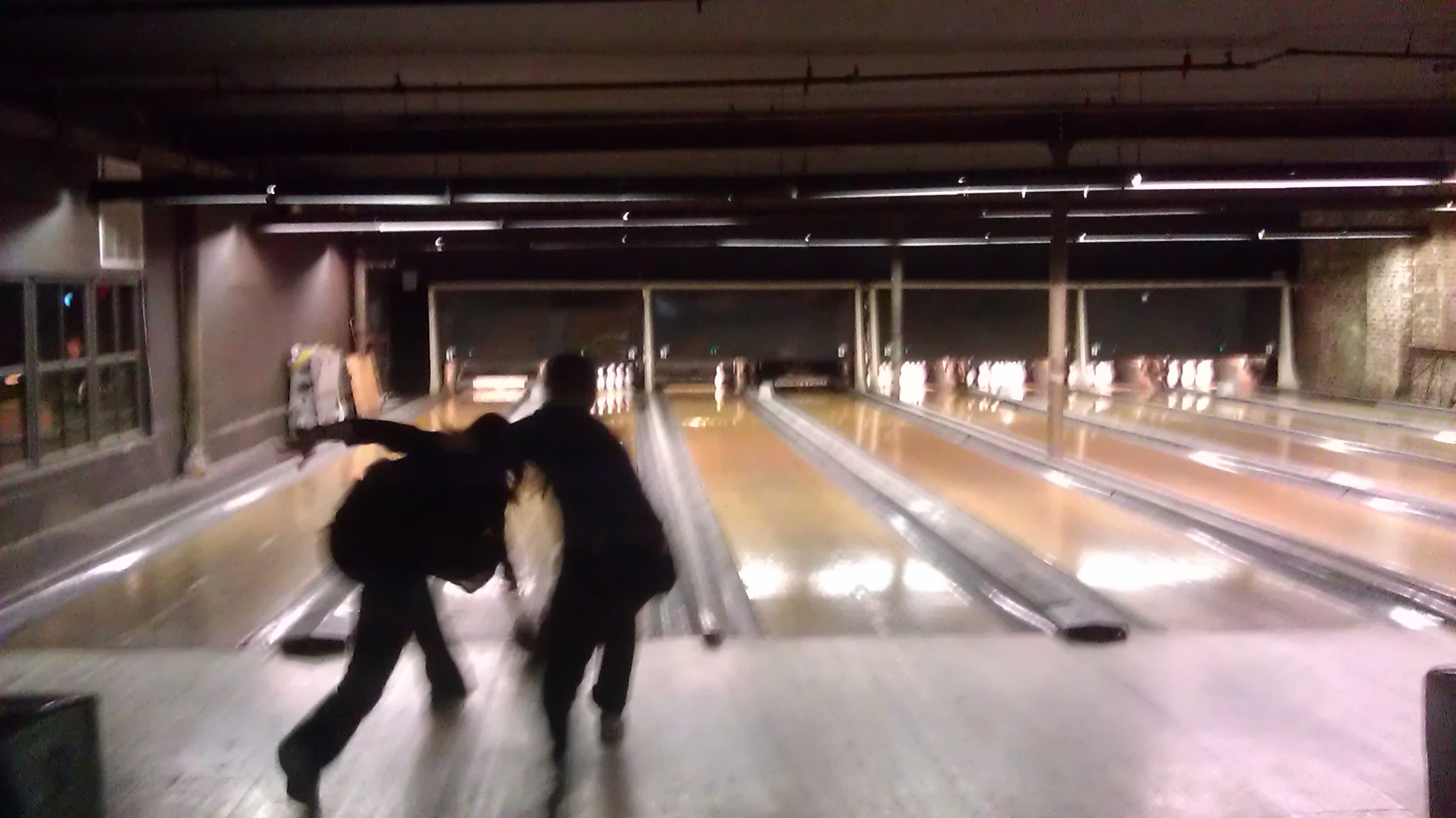 Vi spelade bowling och jag var faktiskt riktigt bra (framför allt om jag jämför med sist jag spelade med mina päron). Låg på 2a-3e plats i början och kom sen i slutet på fjärde plats av 6, men jag var ändå rätt nöjd. En enda gång som klotet hamnade i rännan. Stolt, haha:) Men kvällen handlade mest om att ha trevligt och inte om hur bra man spelade, hehe.