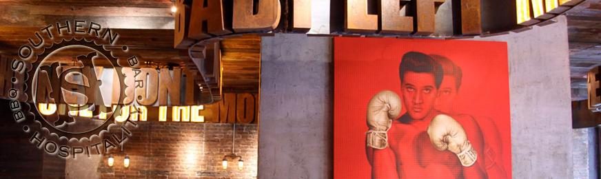 Southern Hospitality skapades tydligen av självaste Justin Timberlake med vänner. Han var ju inte där igår, inte vad jag kunde se iaf, men sjukt najs ställe ändå och med bra musik. Det finns en i Hell’s Kitchen och en på Upper East. Får bli den andra nästa gång. Har gått förbi ett par gånger och blivit intresserad just för att det ser coolt ut och Elvis hänger på väggarna. Riktigt Memphis style🙂