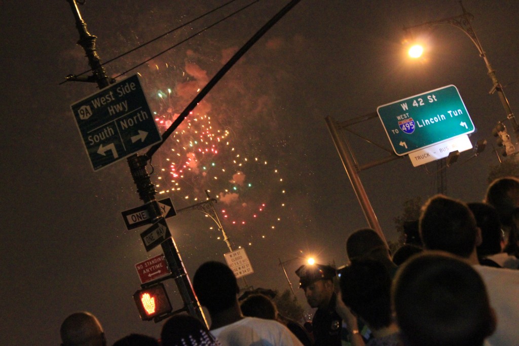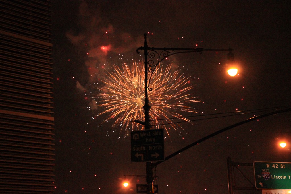 Skypade med syster ett tag, mycket trevligt. Sen bar det iväg ut i värmen igen. Gick mot väst där det såklart denna dag var packat med folk. Åt hamburgare Amerika till ära på vår gamla Diner i Hell’s Kitchen. Men ett relativt lyckat försök tog vi oss ner mot vattnet. Inte lika bra platser som förra året, men ack så mysigt. Fireworks har man ju sett förut så gjorde inte så mycket. Jag lekte med min baby, aka kameran, och sen bar det hemmåt. Fortfarande lika varmt så en iskall dusch var på sin plats innan jag slocknade i sängen.