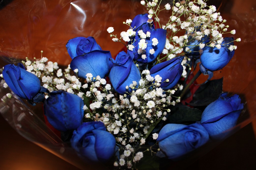 Min älskling kom hem med en bukett med blå rosor till mig igår. Så söt, han ville inte ge mig röda rosor för det är lite tråkigt, så han valde blå för det är ju samma färg som Sonic, hahahaha. Hur gulligt som helst!