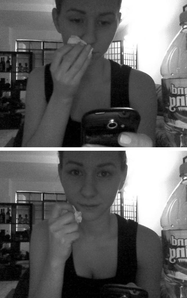 Skype med syrran, smsar med älskling, papper i näsan, vatten mot huvudvärk