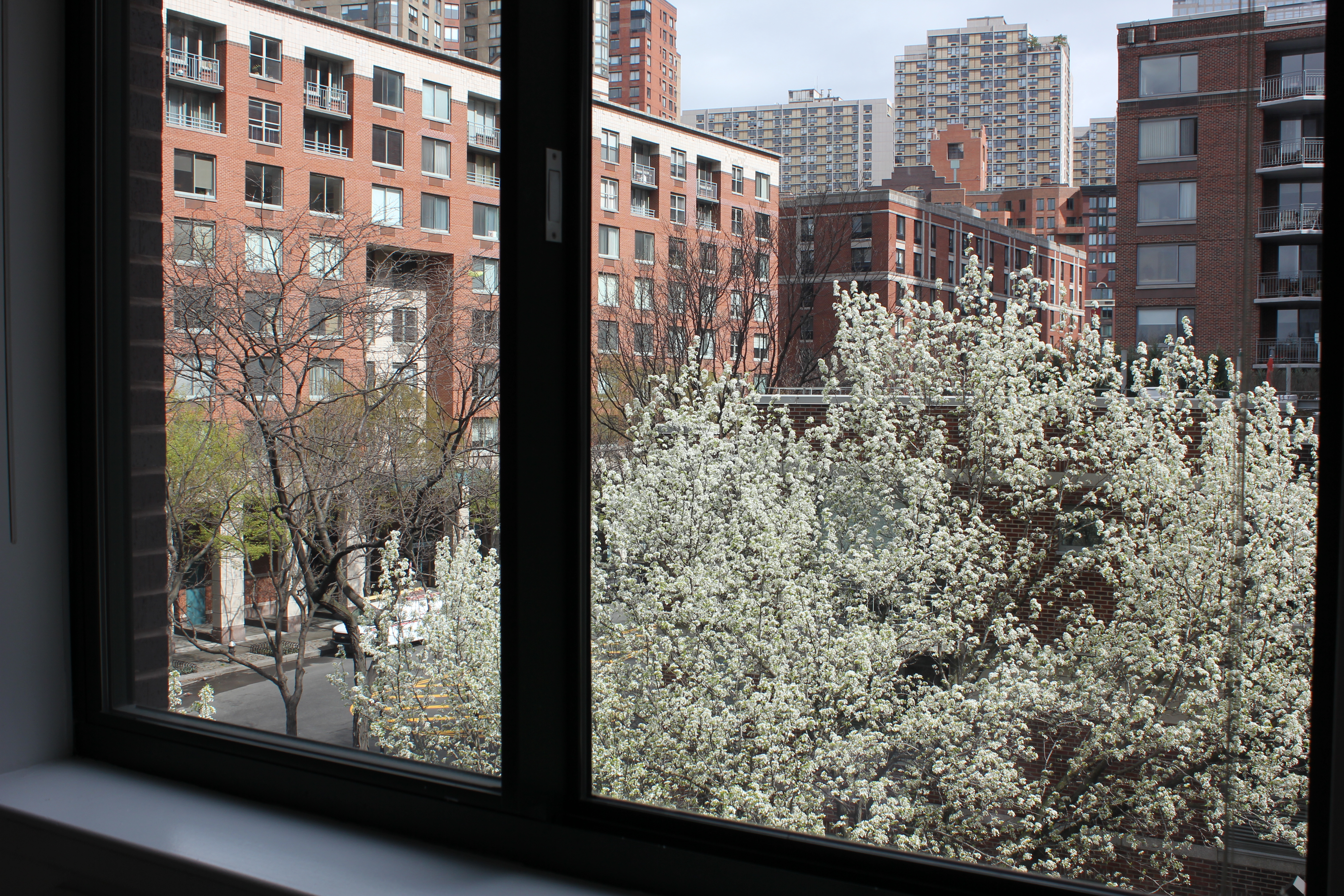 Jag drar upp rullgardinen i sovrummet och möter blommande träd:)