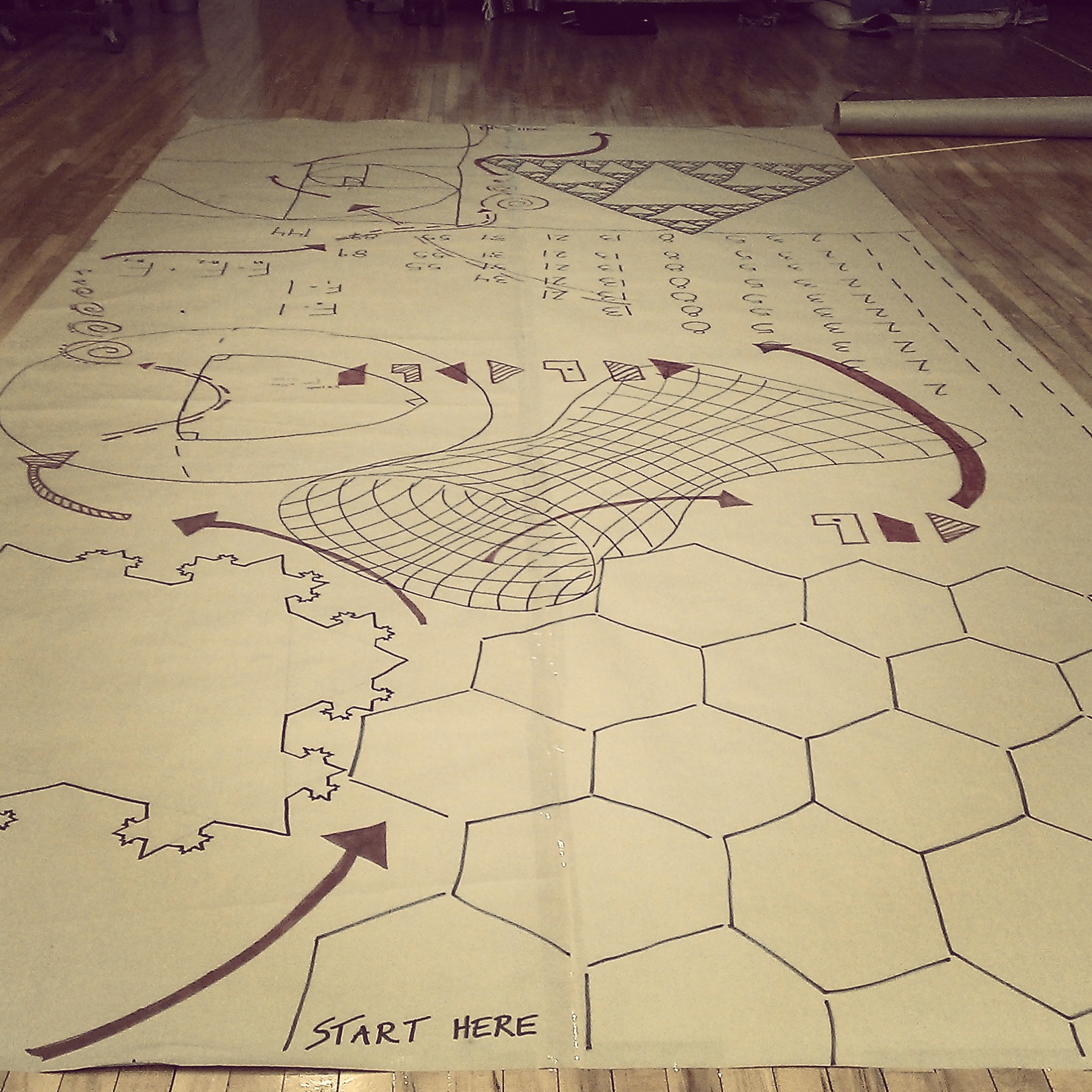Sista dagen med Lauren idag. Hon ritade nytt pa dubbel uppsattning papper. Lite mer struktur an att vi i mandags bara ritade dit vad vi kande for och vart som helst pa pappret. Jag och Tim var dagens forsokskaniner. Vi testade hur manga olika varianter som helst. Gick tillbaka till saker vi har provat forut under vara tva manader, gick tillbaka till att skapa en fras precis som i mandags, improviserade med en partner som hade en helt annan uppgift an en sjalv, och mycket annat. Idag kom vi faktiskt bara fram till saker som inte funkar, hahah.
