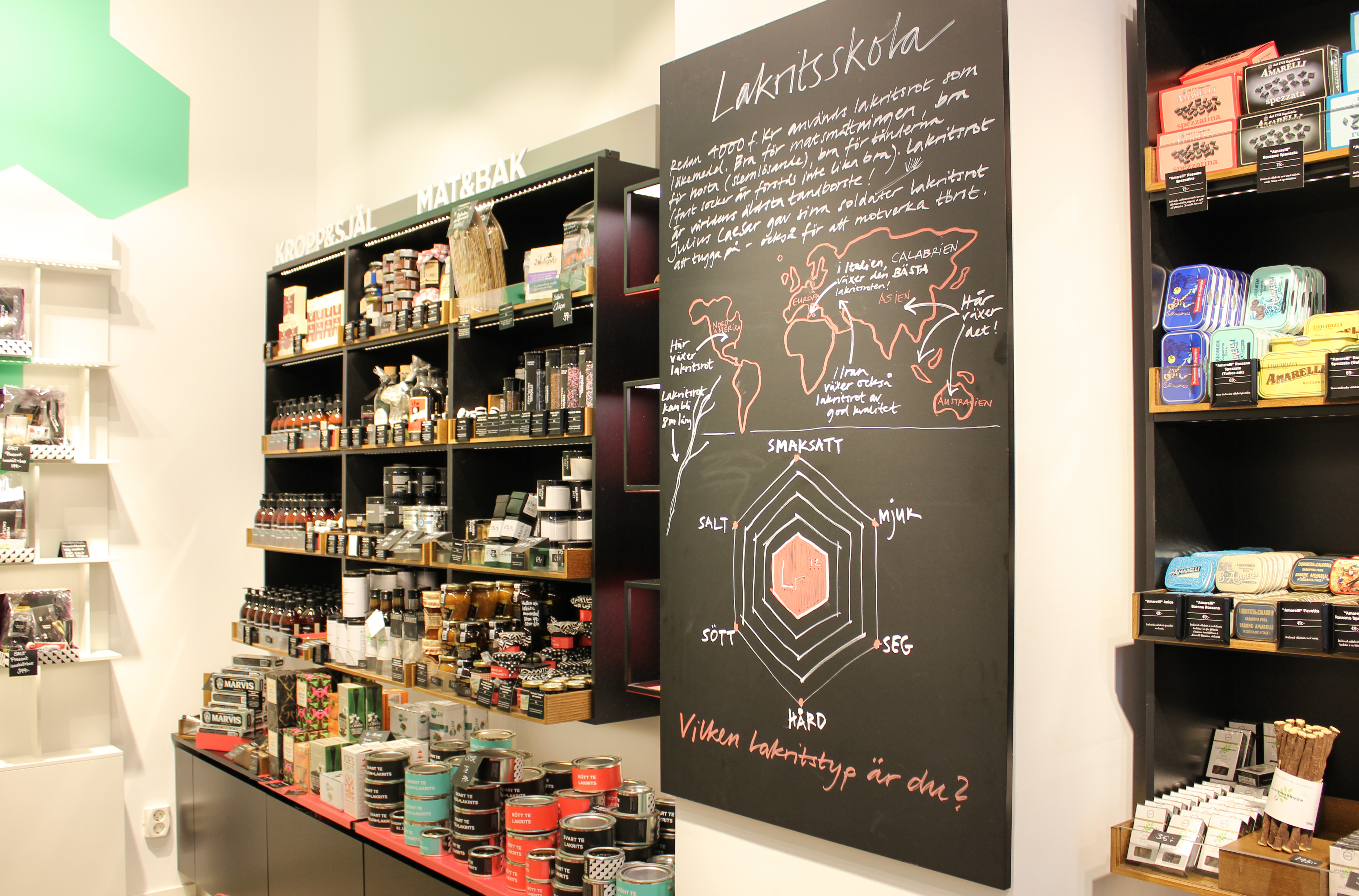 Saklart maste jag tipsa om varldens basta butik: Lakritsroten. Ligger pa Sveavagen i Stockholm. De har allt man kan tanka sig med lakrits (och aven sadant man inte kan tanka sig, haha). Den har gangen visste jag vad jag ville ha innan jag gick dit och holl mig till det. Ar du ett lakritsmonster precis som jag sa maste du ga dit nar du ar i Stockholm!
