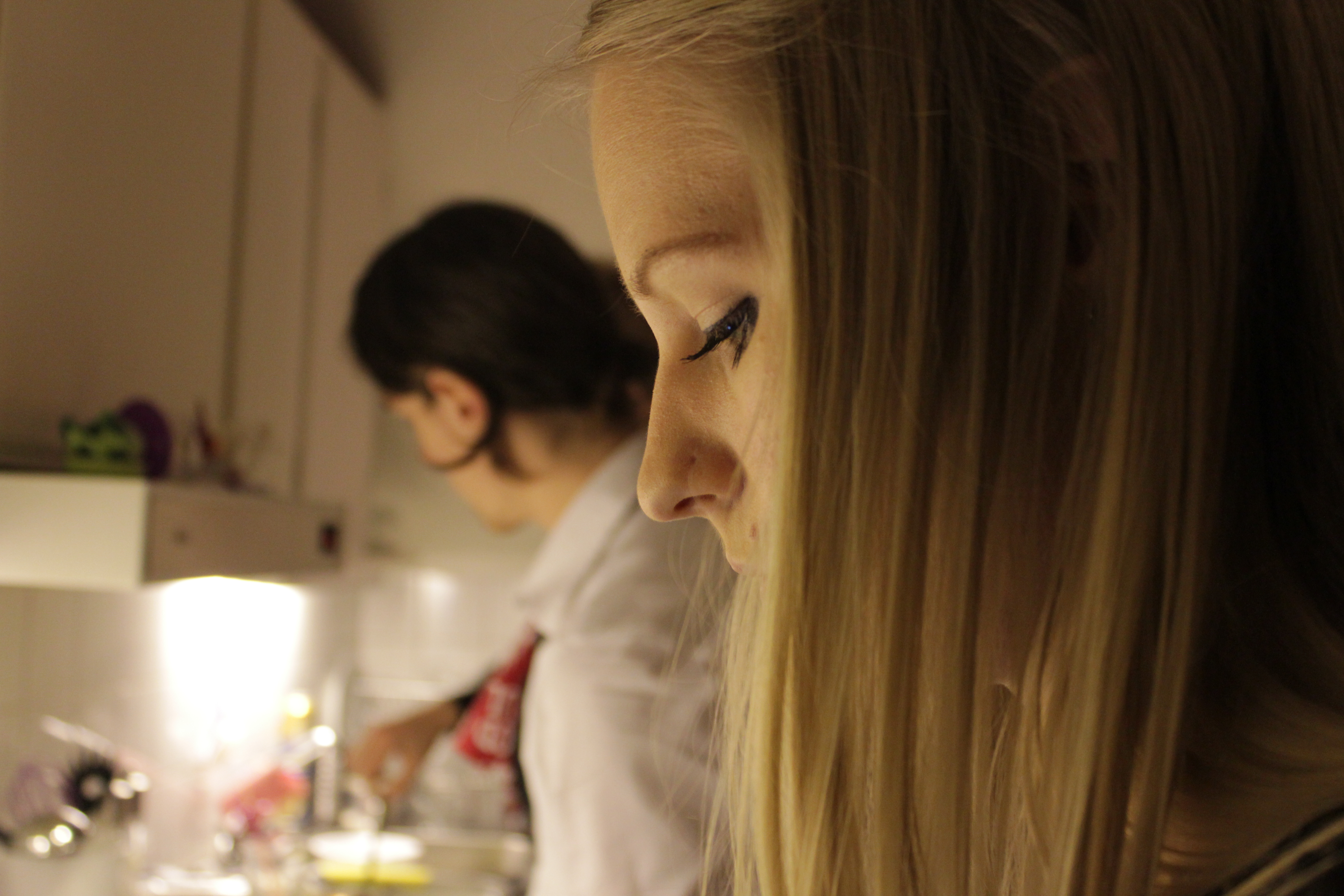 Syster fokuserad i köket