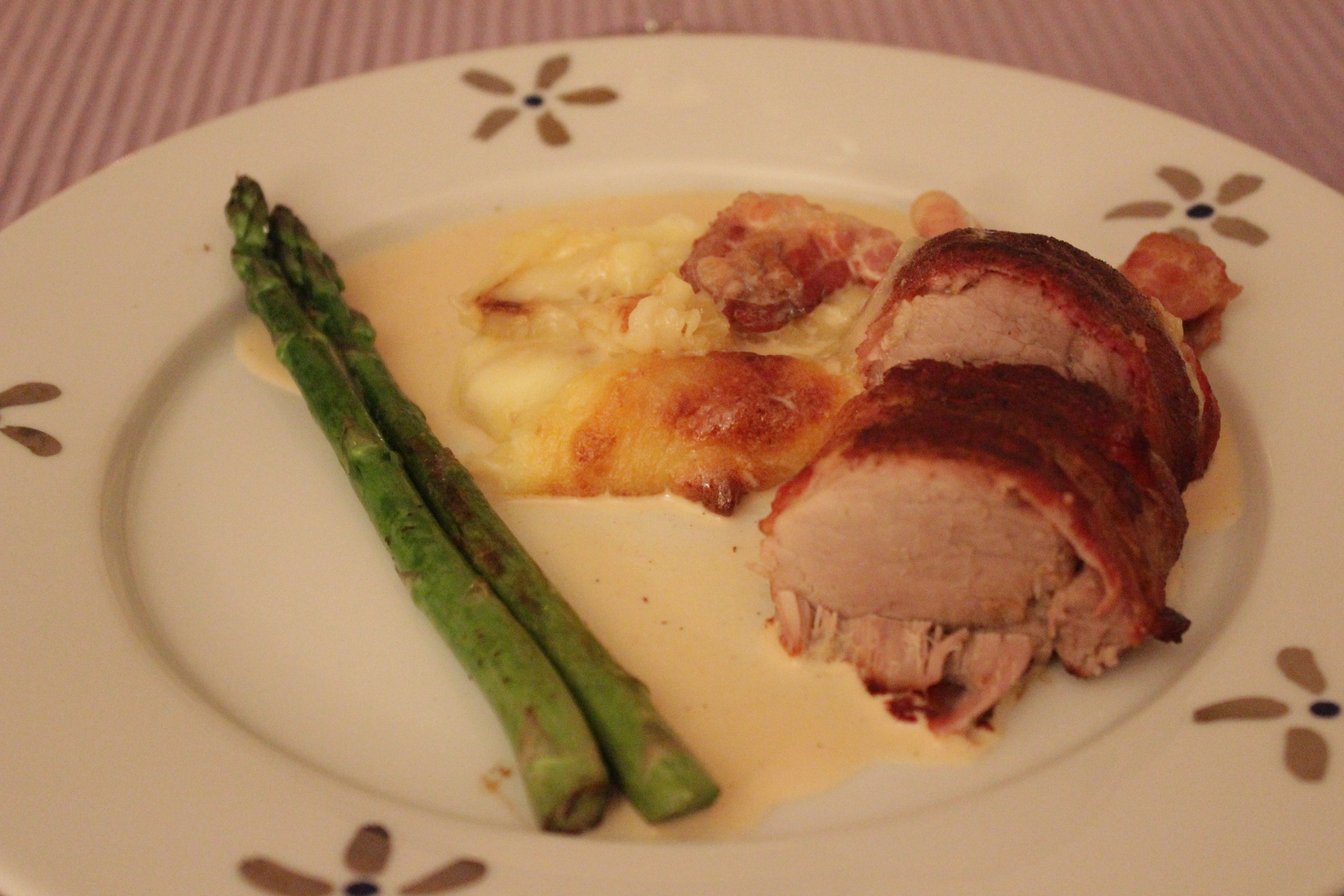 Köttet var oxå väldigt gott. Bacon runt om och sedan bacon i såsen, mums:)
